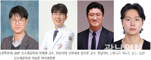 전남대학교는 28일 “의과대학 김수완 교수팀과 광주과학기술원(GIST) 신소재공학과 이재영 교수 연구팀이 공동으로 급성 신장손상이 만성신부전으로 악화되는 과정을 근본적으로 차단할 수 있는 새로운 치료 기술을 세계 최초로 제시했다”고 밝혔다.