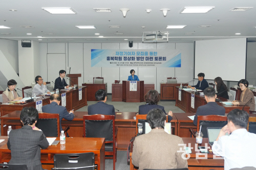 광주시의회 교육문화위원회는 27일 오후 의회에서 ‘재정기여자 모집을 통한 홍복학원 정상화 방안 마련’을 주제로 토론회를 개최했다.