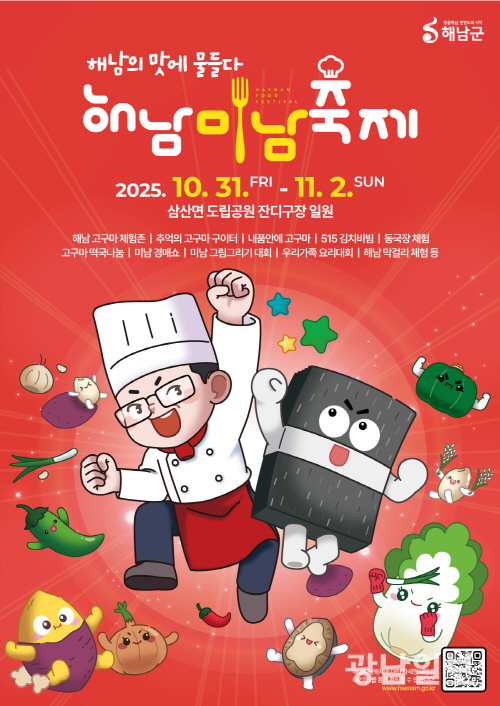특히 올해는 해남백반을 브랜딩한 ‘해남밥상’을 직접 맛볼 수 있는 해남밥상관이 운영된다. 해남의 농수특산물과 전통 식문화를 현대적으로 해석한 ‘해남밥상’과 ‘해남 밀키트’를 선보일 예정이다. 사전 예약·현장 접수를 통해 참여할 수 있다.