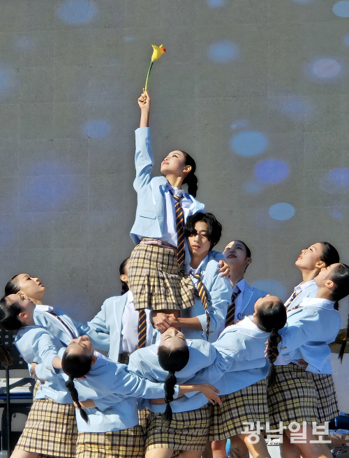 제2회 지역대표공연예술제 ‘무안 네가 꽃’ 무대에서 지역 청소년들이 공연을 펼치고 있다.