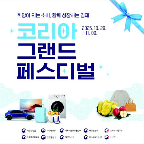 ‘코리아 그랜드 페스티벌’은 올해 처음 열리는 통합형 국가소비축제다. 제조·유통·소상공인 등 3만여 기업이 참여한다. 행사 기간 교통·숙박·관광 등 다양한 분야에서 할인과 프로모션이 진행된다. 국민이 체감할 소비 혜택을 통해 내수 회복과 지역상권 활력을 되살리는 것이 목표다.