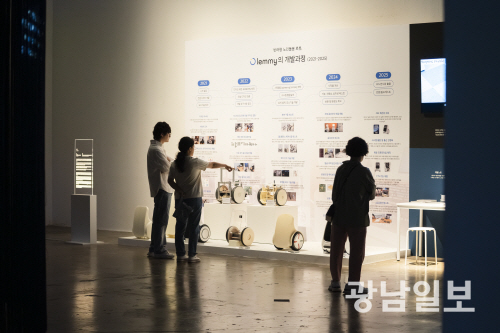 이와함께 울산과학기술원의 ‘래미’(Lemmy, 2025)는 귀여운 생김새와 친근한 명칭으로 어린이 관람객이 선호했다. 이 작품은 노년기 맞춤 반려로봇으로 사용자의 움직임을 감지해 즉각적인 도움을 제공하고 AI 기반 음성인식으로 사용자의 말과 명령에 반응하여 일상 전반을 조력한다. 일정 관리, 실내 온습도 조정, 복약 알림, 응급 대응의 기능을 수행하도록 개발되었다. 아들내미, 딸내미에서 유래한 이름으로 고립되기 쉬운 노년기에 심리적 안정감을 제공한다.