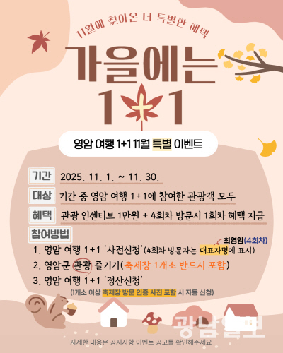11월 ‘영암여행 1+1’ 특별이벤트 진행
