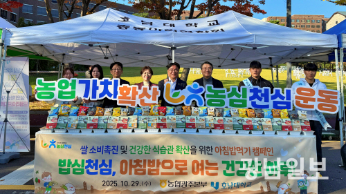 농협 광주본부와 호남대학교는 최근 호남대 축제장에서 ‘쌀 소비촉진 아침밥먹기 캠페인’을 공동으로 진행했다.