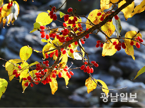 또 봄에는 노란 산수유꽃이 가을에는 루비빛으로 익은 산수유 열매가 장관을 이뤄 11월 초부터 12월 초까지 한 달 간 빨갛게 익은 산수유 열매를 감상할 수 있다.