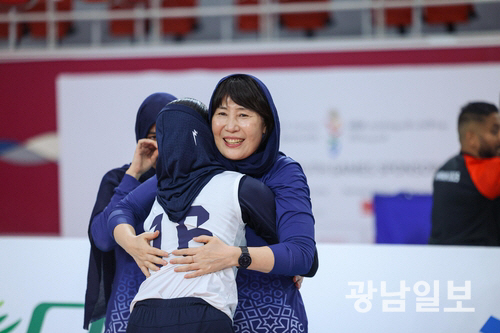 바레인 아시아청소년대회 우승 후 포옹하는 이도희 이란 U-18 여자대표팀 감독[이도희 감독 제공. 재판매 및 DB 금지]연합뉴스
