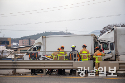 경찰은 대형 트럭 4대가 연속해 추돌한 것으로 보고 정확한 사고 경위를 조사 중이다.