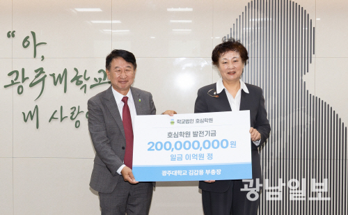 광주대학교 김갑용 부총장이 4일 오전 학교법인 호심학원 및 광주대의 지속 가능한 발전과 후학 양성을 위해 2억원의 발전기금을 쾌척했다.