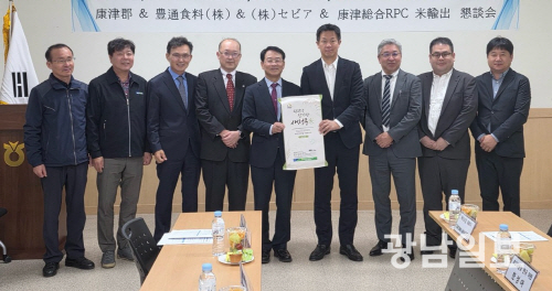 강진군은 최근 강진군 통합RPC에서 강진원 군수가 참석한 가운데 일본 ㈜토요츠 식량, ㈜세비아 관계자들, 강진군 통합RPC 임직원 등과 함께 ‘강진쌀 수출 협력 간담회’를 개최했다.