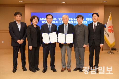 광주시는 6일 시청 비즈니스룸에서 (재)씨젠의료재단과 ‘도심융합특구 조성사업 업무협약(MOU)’을 체결했다. 협약식에는 고광완 행정부시장과 박창수 씨젠의료재단 광주호남검사센터 대표원장이 참석했다.