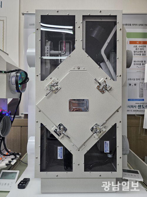 이와 함께 센도리가 조달우수제품으로 지정받은 공기순환기(V0150DWMDC-E 등 6종)는 자동먼지제거장치와 강제 급·배기 제어 기능을 결합한 고성능 환기장치다. 필터에 먼지가 쌓이면 브러시가 이를 자동으로 제거하고, 회수된 배기열을 80% 이상 재활용해 초기 풍량의 95% 이상을 일정하게 유지한다.