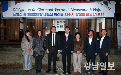 프랑스 클레르몽페랑의 제롬 오슬랑데르 부시장(왼쪽 세 번째)을 비롯한 3명으로 구성된 행정대표단이 최근 나주를 공식 방문했다