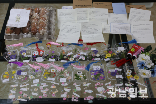 이날 광주 조대여중 2학년 학생 5명이 손편지와 꽃 책갈피, 직접 구운 달걀을 소방관들에게 선물했다.