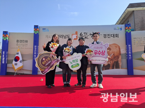 곡성군은 최근 순천광양축협에서 열린 ‘2025년 제41회 전남도 으뜸한우 경진대회’에서 고급육 부문 옥과면 최하나 농가가 ‘최우수상’, 우량한우(미경산우) 부문 목사동면 조신익 농가가 ‘최우수상’, 우량한우(암송아지) 부문 겸면 이금숙 농가가 ‘노력상’을 수상했다.