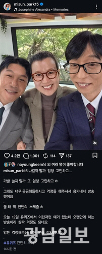이날 자신의 인스타그램에 ‘유퀴즈’ 진행자 유재석, 조세호와 함께 찍은 사진을 게재하고 “올해 딱 한 번의 스케줄”이라고 설명을 달았다. 이 게시물은 지난 5월 28일 이후 처음 올린 것이다.