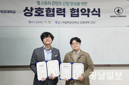 국립목포대학교(총장 송하철) 문예창작전공은 12일 목포대학교 도림캠퍼스 인문대학에서 네이버 계열 웹소설 콘텐츠 전문 기업 ㈜작가컴퍼니(대표이사 김종방)와 업무협약을 체결했다.