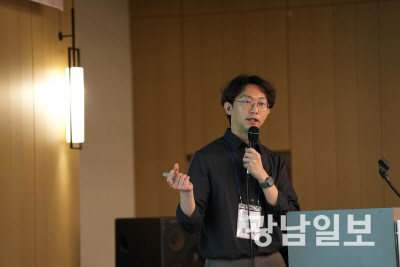 정인택 대표가 지난 4월 한국엔젤투자협회 ‘호남 엔젤리더스 포럼 in 광주’에서 회사 소개를 하고 있다.