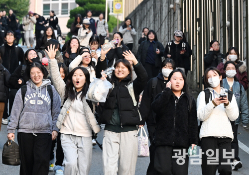 2026학년도 대학수학능력시험이 치러진 13일 오후 광주 남구 봉선동 동아여고에서 시험을 마친 수험생들이 밝은 표정으로 걸어 나오고 있다. 최기남 기자 luesky@gwangnam.co.kr