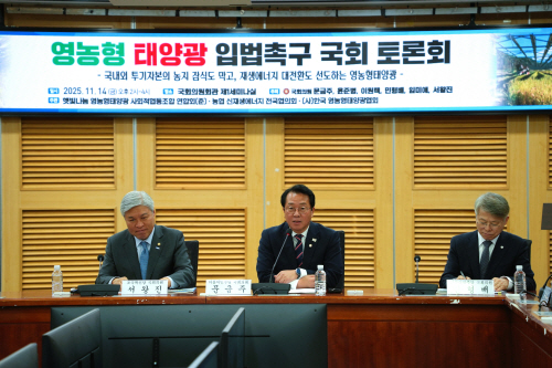 앞서 지난 3월 문 의원이 대표발의 한 ‘영농형 태양광 발전사업 지원 및 활성화 특별법안’은 농해수위가 심사 중이다.