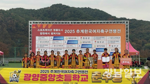 16일 전남도체육회에 따르면 최근 경남 합천군에서 열린 ‘2025 추계 한국여자축구 연맹전’에서 광양여고가 고등부 우승을, 광양중앙초가 초등부 준우승을 차지했다.