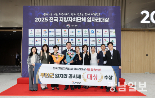 무안군은 최근 4년간 고용노동부 주관 ‘전국 지방자치단체 일자리 대상’ 지역 일자리 목표 공시제 부문에서 연속으로 수상(2022~2025년)했으며, 특히 올해는 지난 9월 30일 충북 청주 OSCO에서 열린 2025년 전국 지방자치단체 일자리대상 시상식에서 전국 기초 지자체 중 1위라고 볼 수 있는 기초지자체 ‘대상’을 수상했다.
