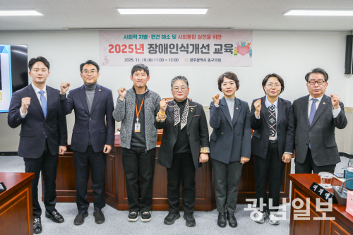 광주 동구의회는 18일 의원과 의회사무과 전직원을 대상으로 ‘2025년 장애인식개선 교육’을 실시했다.