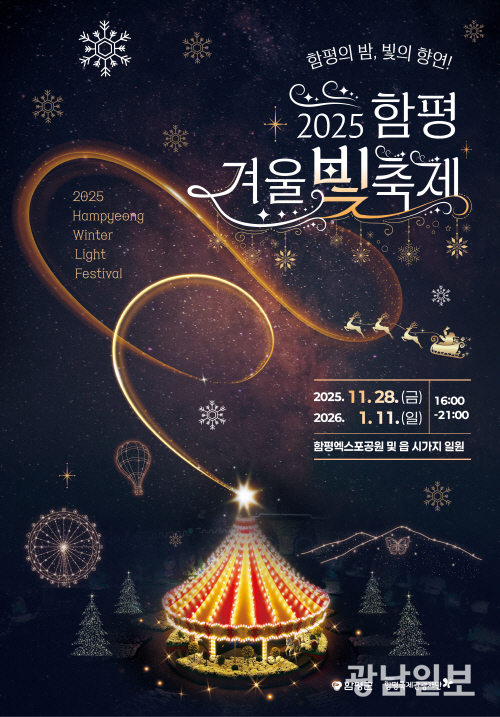 ‘2025 함평 겨울빛축제’는 ‘함평의 밤, 빛의 향연’을 주제로 오는 28일부터 2026년 1월 11일까지 45일간 함평엑스포공원 일원에서 개최된다.