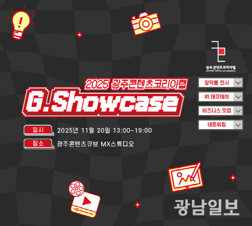 광주정보문화산업진흥원(GCION) 광주콘텐츠코리아랩은 GICON WEEK(11월 20~21일) 첫날인 20일 광주실감콘텐츠큐브 3층 MX스튜디오에서 ‘2025 광주콘텐츠코리아랩 G.Showcase’를 개최한다.