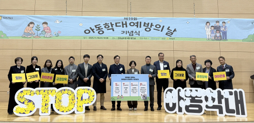전남도는 19일 도청 왕인실에서 전남도아동전문보호기관이 개최한 ‘제19회 아동학대 예방의 날 기념식’에 참여해 관계기관들과 아동학대 없는 전남을 만들기 위한 뜻을 모았다고 밝혔다.