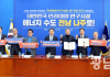 19일 서울 국회 민주당 원내대표 회의실에서 김영록 전남도지사와 윤병태 나주시장이 김원이 전남도당위원장을 비롯한 지역 국회의원들과 ‘인공태양 연구시설 나주 유치 촉구’를 위한 공동결의를 하고 있다.사진제공=전남도