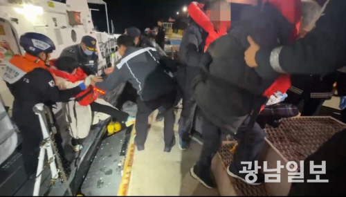 승객들, 해경 함정 나눠타고 이송…27명 부상자 잠정 분류