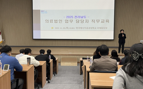 전남도는 20일 나주의 한국에너지공과대학교 국제회의장에서 정상적으로 운영 중인 전남지역 58개 의료법인 관계자를 대상으로 운영의 투명성과 공공성 강화를 다짐하는 직무교육을 했다.