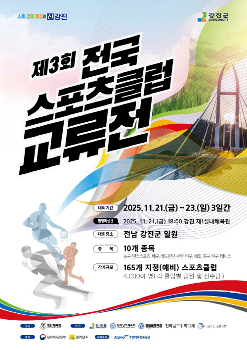 이병돈 강진군체육회장은 “스포츠를 매개로 한 소통과 화합의 장이 지역에 활기를 불어넣고, ‘체육도시’ 강진의 매력을 전국에 알릴 수 있는 좋은 기회가 될 것”이라고 전했다.