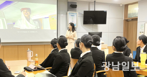 이번 특강에는 에미레이트항공 및 아시아나항공 객실승무원 출신으로, 현재 국제항공운송협회(IATA) 광주·전남 교육센터장을 맡고 있는 윤이나 강사가 초청됐다.