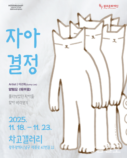 지난 여름 귤향을 머금은 상큼한 그림과 신선한 AR(증강현실) 기술을 결합한 개인전을 선보였던 이선희 작가가 이번에는 고양이 드로잉으로 관객을 만난다. 개인전을 지난 18일 개막, 오는 23일까지 광주 양림동 차고갤러리에서 진행한다.