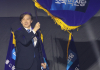 조국혁신당 조국 대표가 23일 오후 청주 오스코에서 열린 전당대회에서 당 대표로 선출된 뒤 당기를 흔들고 있다. /연합뉴스