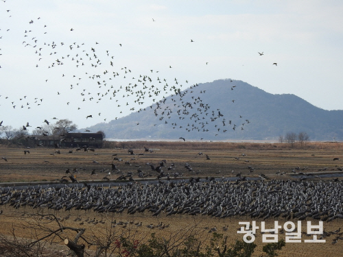 24일 순천시에 따르면 지난 20일 기준 흑두루미 도래 개체수가 8180마리로 최대치를 기록했다.