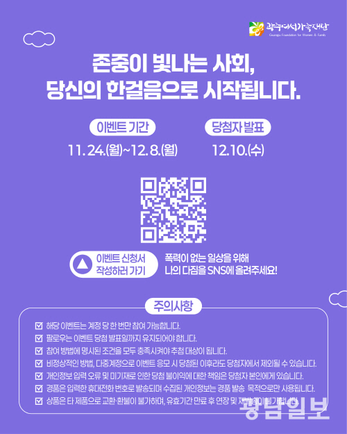 자세한 내용은 재단 홈페이지(www.gjwf.or.kr) 또는 공식 인스타그램(@gjwomenfamily)을 통해 확인할 수 있다. 문의 062-670-0534~5.
