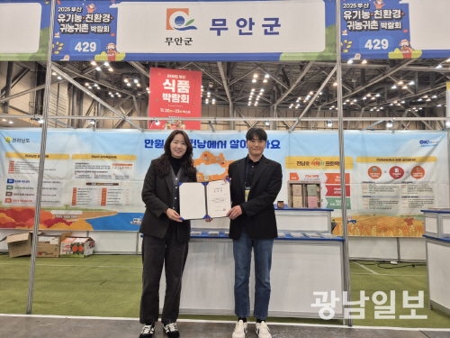 무안군이 지난 23일,부산벡스코에서 열린 제15회 유기농·친환경·귀농귀촌 박람회에서 우수지자체상을 수상했다