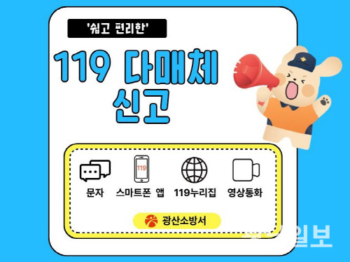 광주 광산소방은 화재·구조·구급 등 재난 발생 시 다양한 방법으로 신고가 가능한 ‘119다매체 신고 서비스’를 운영, 안내한다고 25일 밝혔다.