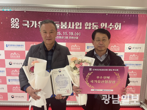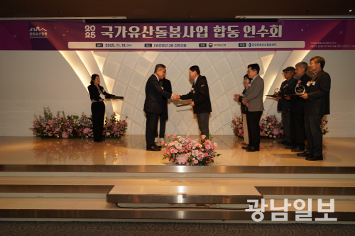 국가유산청은 지난 19일 대전 KW컨벤션에서 열린 ‘2025년 국가유산 돌봄사업 합동 연수회’에서 광주문화유산돌봄센터를 충남동남, 충북, 전북서부, 대구, 제주문화유산 등의 단체와 함께 전국 25개 지역 문화유산돌봄센터(이하 지역 센터) 중 우수 단체로 선정했다.