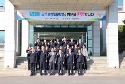 강태일 광주본부세관장이 26일 광양세관 방문해 직원들과 기념촬영하고 있다.