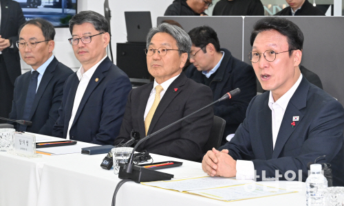 김민석 국무총리가 26일 광주 서구 기아 오토랜드 광주공장을 방문, 송호성 기아 사장 등 경영진과 환담하고 있다. 광주·전남 사진기자단