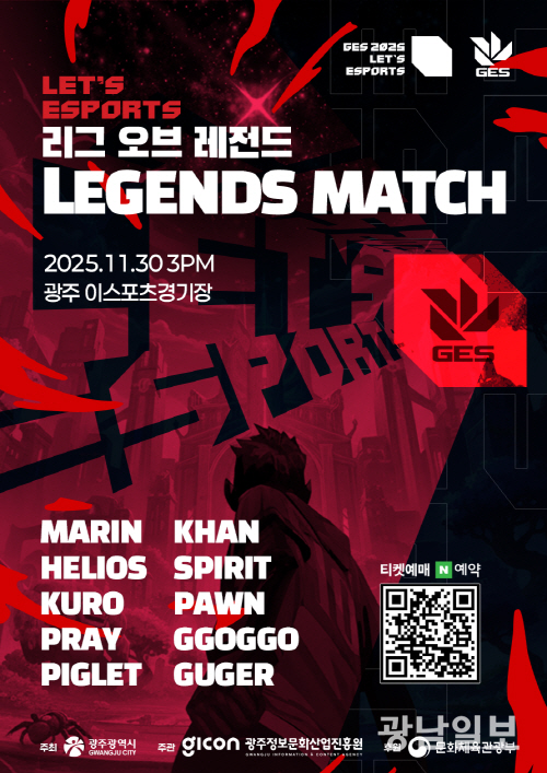 무료로 진행되는 ‘렛츠 e스포츠: LoL 레전드 매치’는 지난 17일부터 광주이스포츠경기장 네이버 예약 페이지에서 예매를 시작했으며, 1005석 전 좌석이 이미 매진됐다. 취소표는 행사 당일까지 네이버 예약을 통해 재예매가 가능하고, 당일에는 노쇼 좌석에 한해 현장 등록도 받을 예정이다.