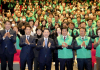 김영록 전남도지사가 27일 전남도청 김대중강당에서 열린 ‘2025 전라남도 새마을지도자대회’에서 새마을노래를 제창하고 있다.