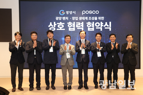 광양시와 포스코홀딩스는 최근 ‘체인지업그라운드 광양’ 개관식에서 ‘벤처·창업 생태계 조성을 위한 상호협력 협약’을 체결했다.