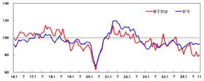 광주·전남지역 제조업 기업심리지수 추이
