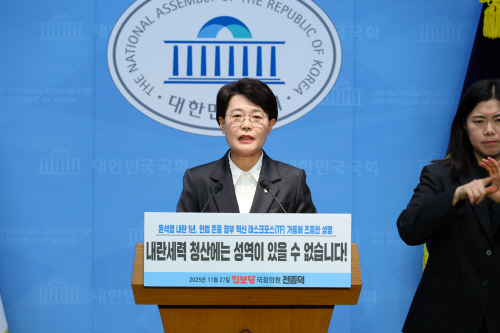 진보당 전종덕 의원(비례대표)은 27일 오전 국회 소통관에서 기자회견을 열고 ‘윤석열 내란 1년’을 맞아 가동되는 ‘헌법존중 정부 혁신 TF’가 성역 없는 내란세력 청산에 나설 것을 촉구했다.