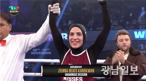세계 프로복싱 사상 최초로 히잡을 착용한 여성 복서가 프로 데뷔전에서 만장일치 판정승을 거뒀다.