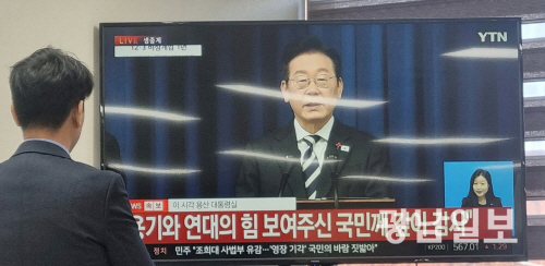 12·3 불법 비상계엄 1년을 맞은 3일 광주시민들이 이재명 대통령이 ‘빛의 혁명 1주년, 대국민 특별성명’을 발표하는 방송을 지켜보고 있다. 최기남 기자